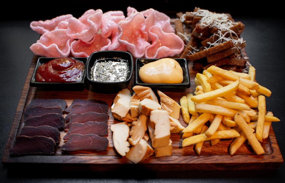 Гренки, чипсы из креветок, бастурма, картофель фри, копченый сыр