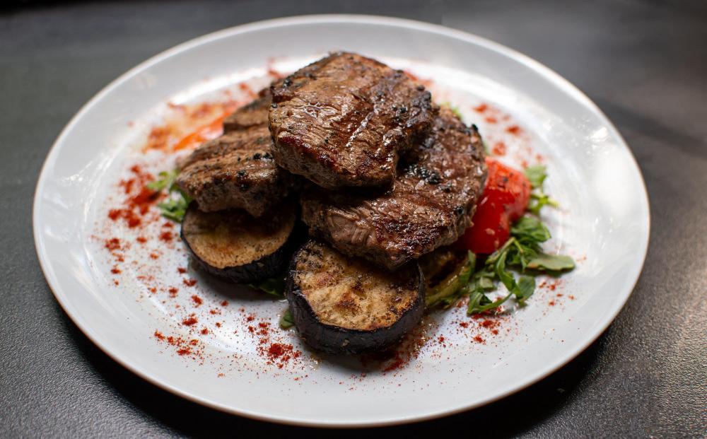 Медальоны из говяжьей вырезки с овощами гриль