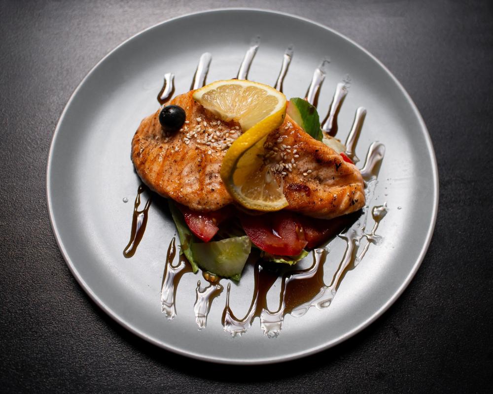 Стейк лосося с овощами/рисом